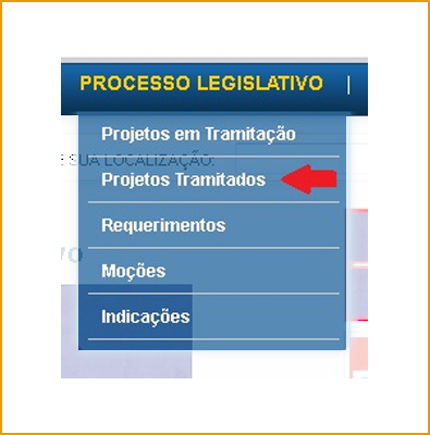 No mesmo menu onde se encontra "Projetos em Tramitação" existe um item "Projetos Tramitados"